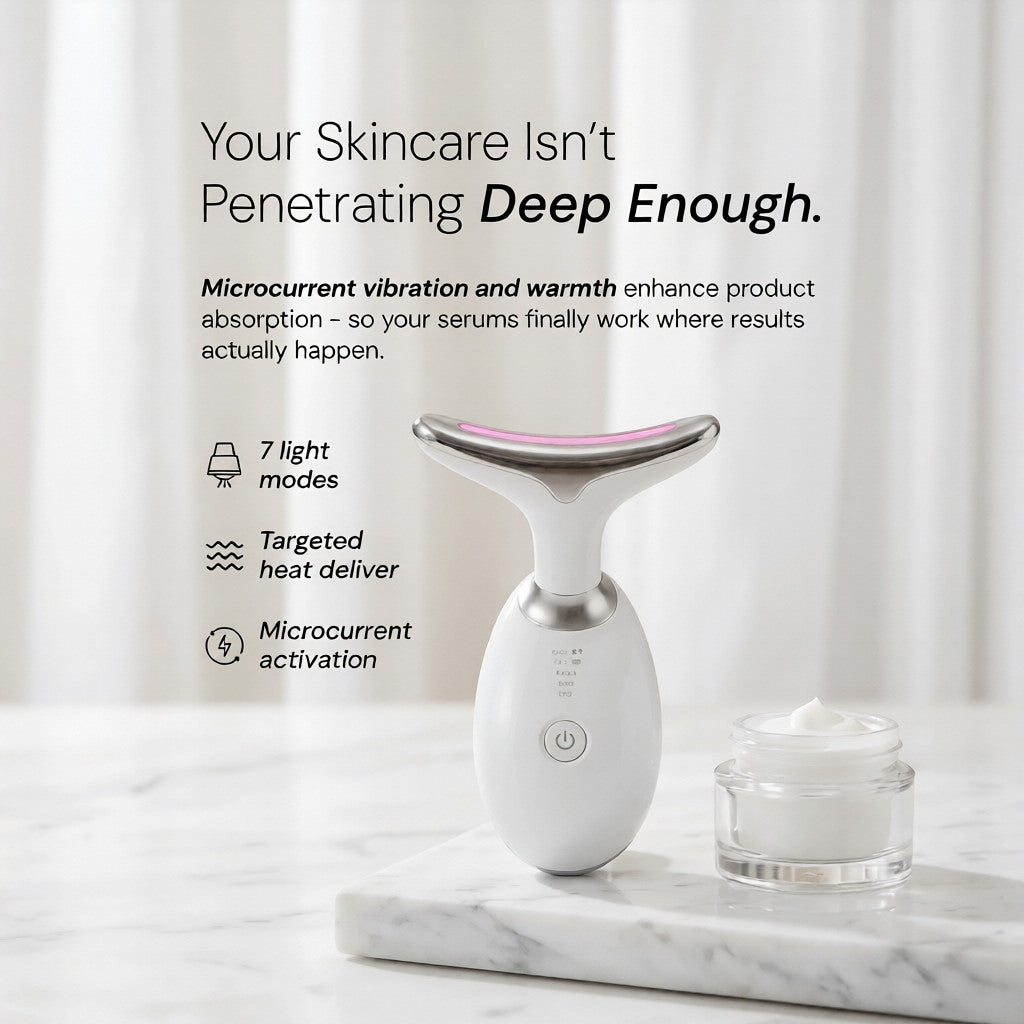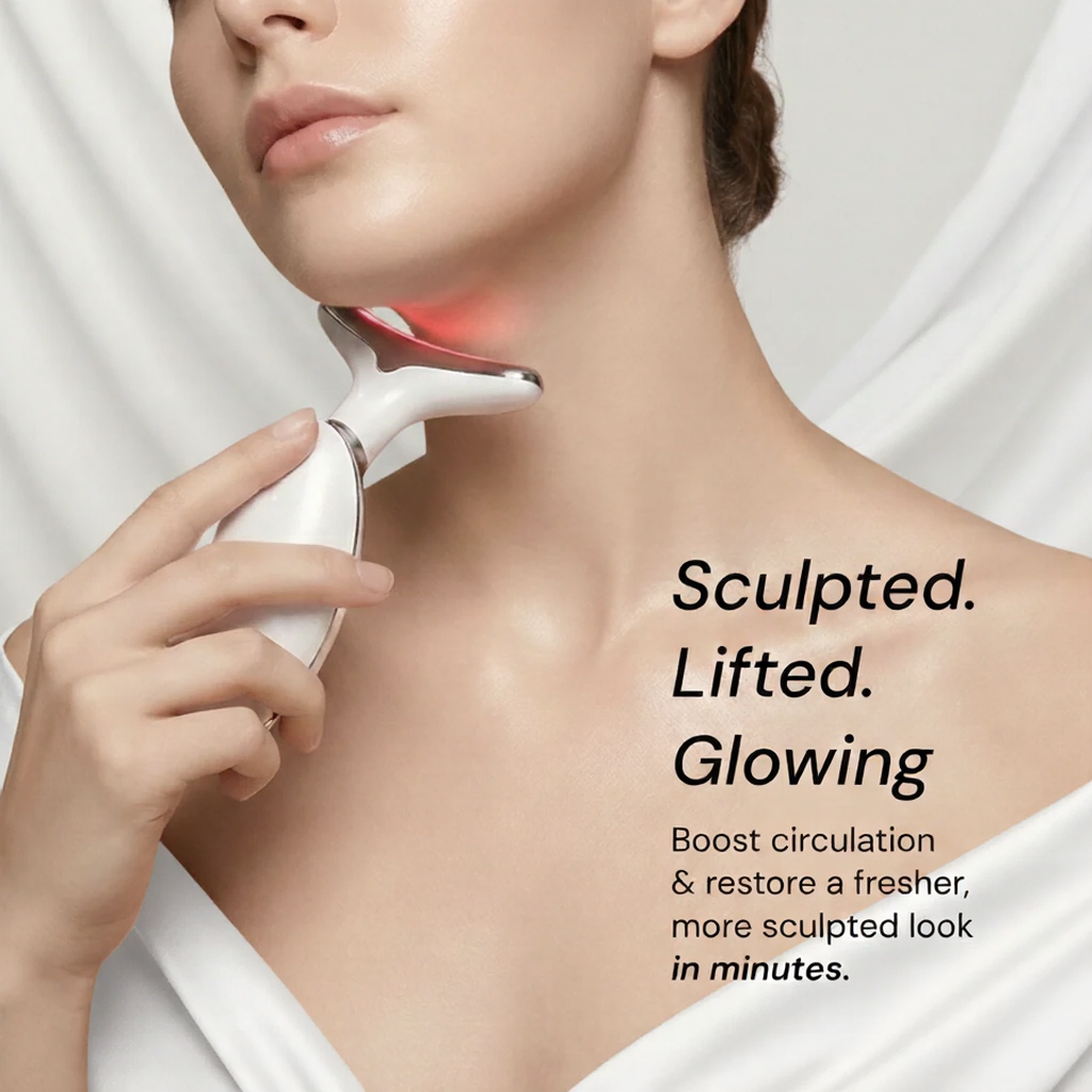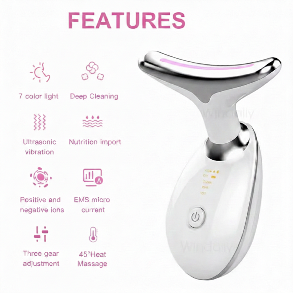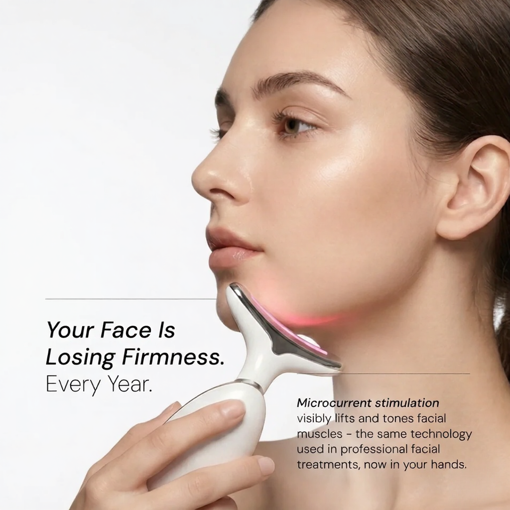 Dual EMS + LED therapy. Targets face AND neck. USB rechargeable. Salon results, fraction of cost.